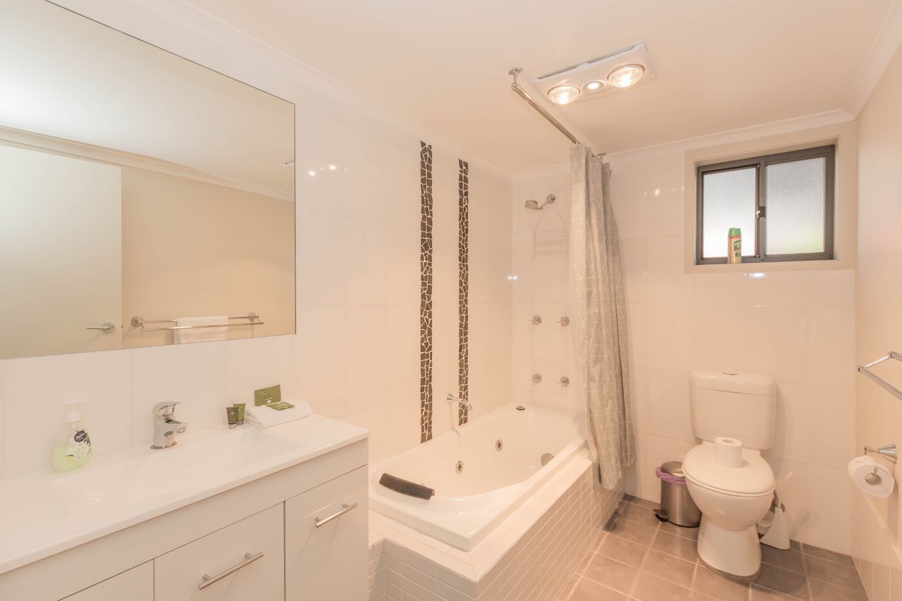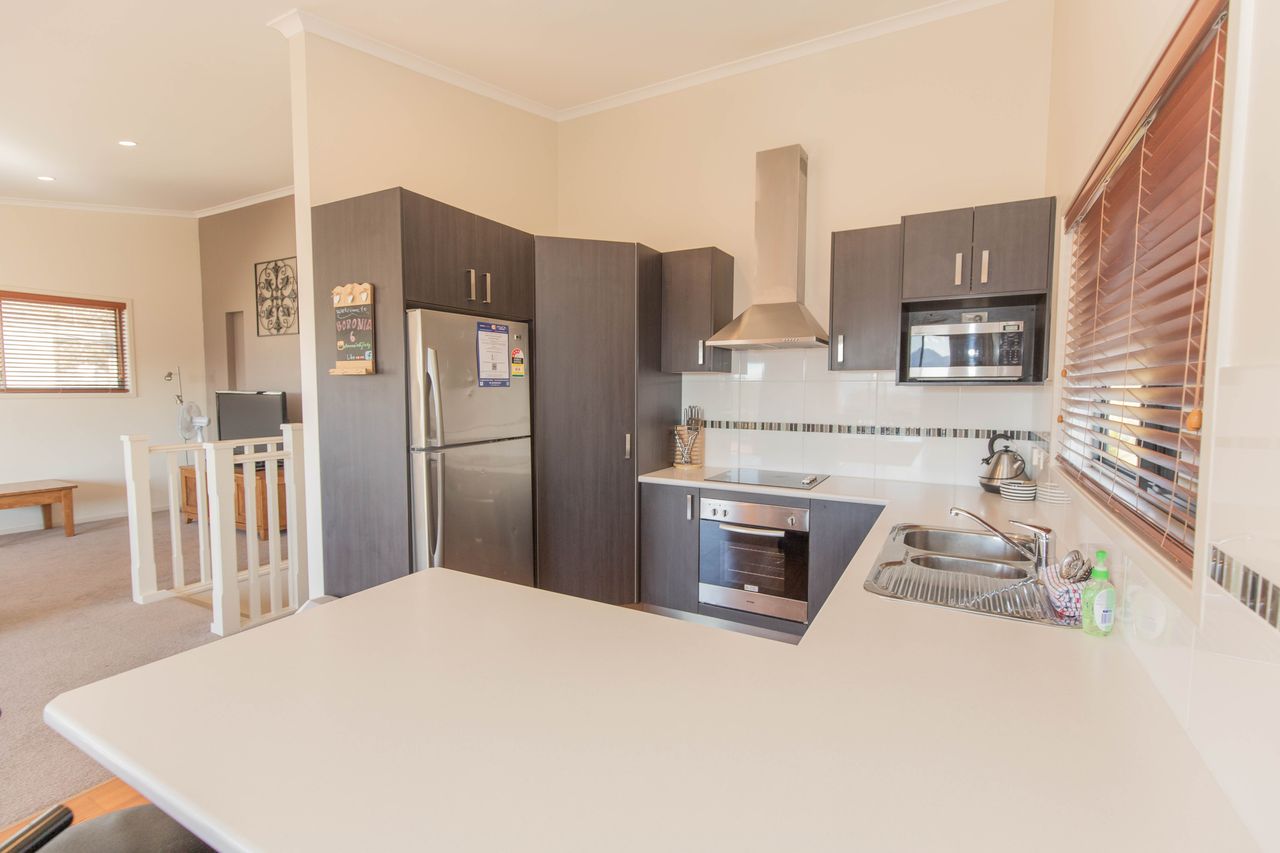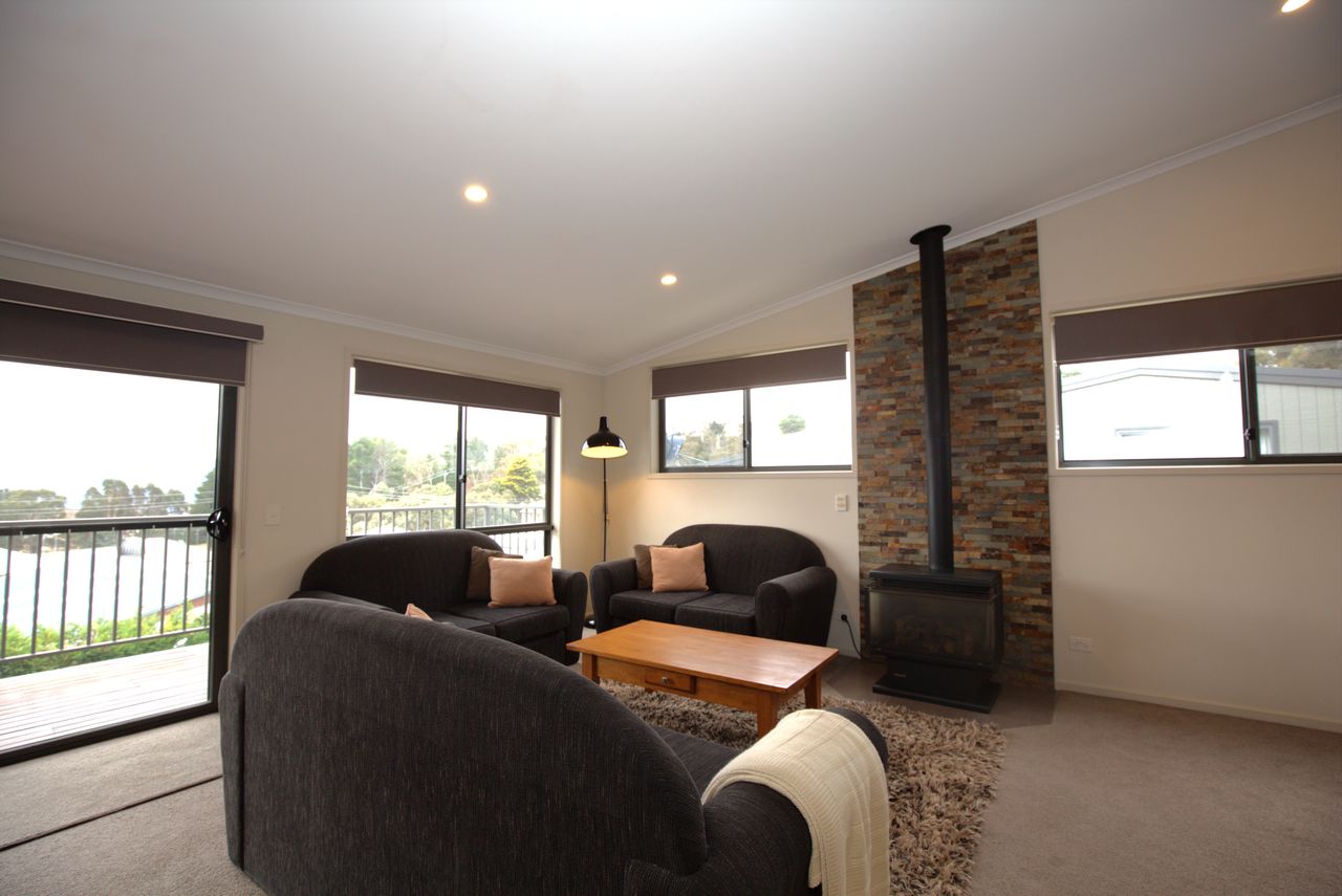 The open living is very spacious with room to cook, dine and lounge all while socialising as a group. Full kitchen facilities with dishwasher and microwave as well as a BBQ out on the balcony. Lounge has a flat screen TV, plus gas log fire, reverse cycle air conditioning, and two bathrooms over two levels, one with spa bath.